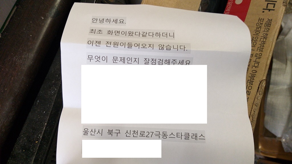 수리 후 정상적으로 동작하는지 테스트 한 후 바로 출고해 드렸습니다.