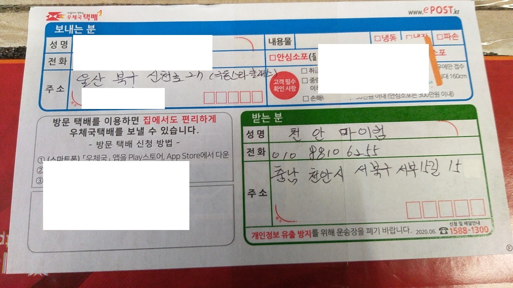 울산 북구 극동 스타클래스 아파트에서 택배로 입고해 주셨습니다.
