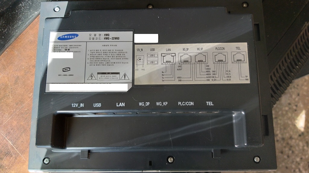 제품의 뒷면에는 월패드 게이트웨이 HWG HWG-22WK0 또는 HWG-22WKO 이라고 표기가 되어 있습니다.