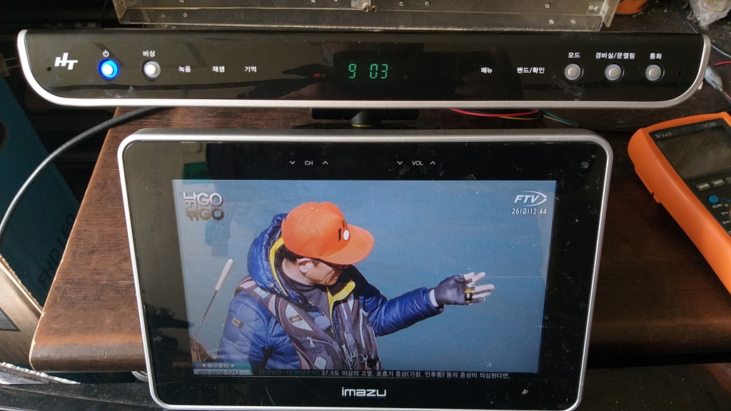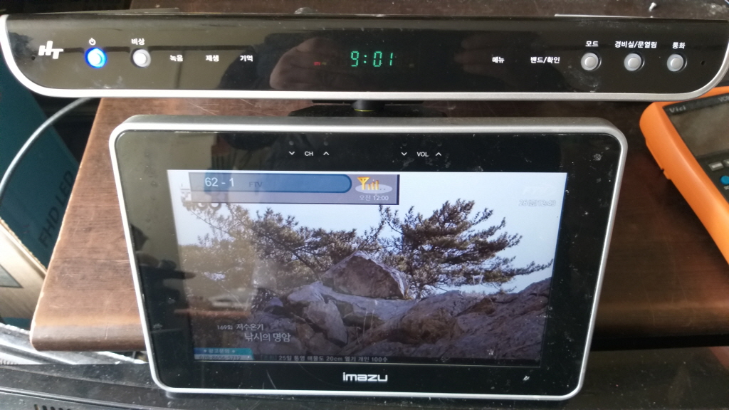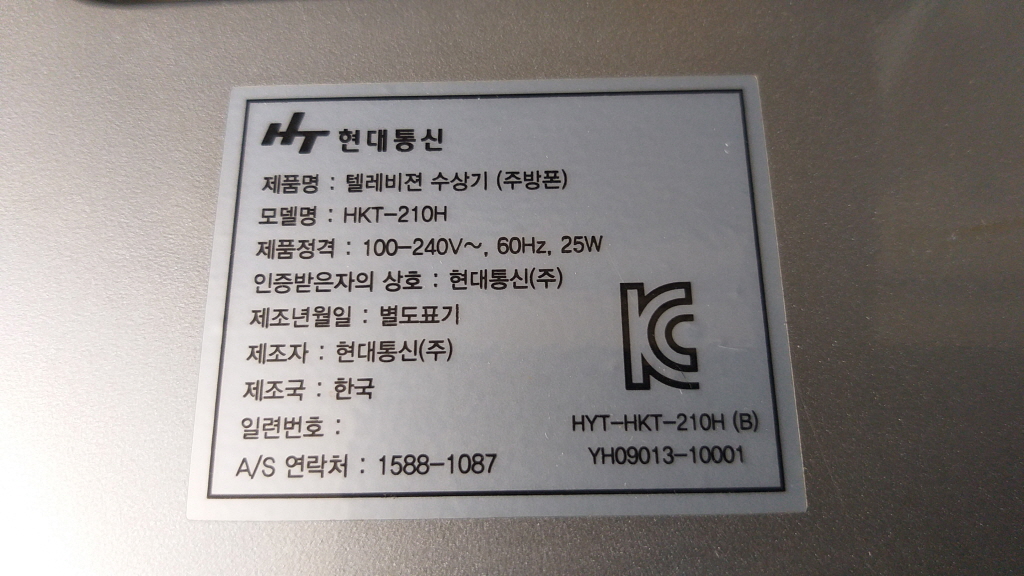 입고 제품은 디지털 방송 수신이 가능한 현대통신 IMAZU HKT-210H 주방 TV 폰입니다.