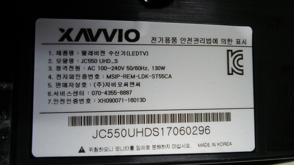 입고 제품 : 자비오씨앤씨 XAVVIO JC550 UHD_S 55인치 UHD TV