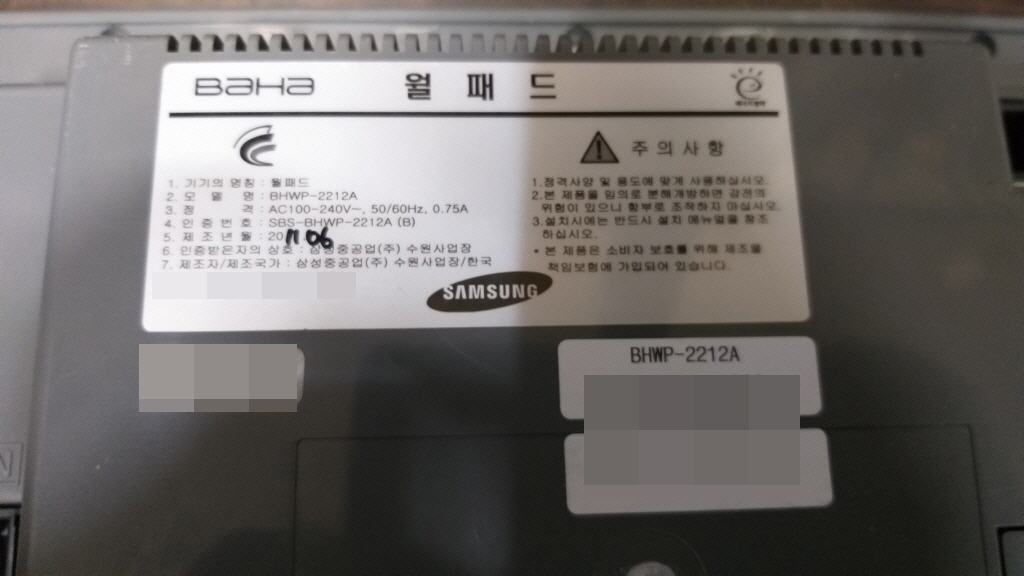 입고 제품 : 삼성중공업 SAMSUNG 바하 BAHA 월패드(WALL PAD) BHWP-2212A