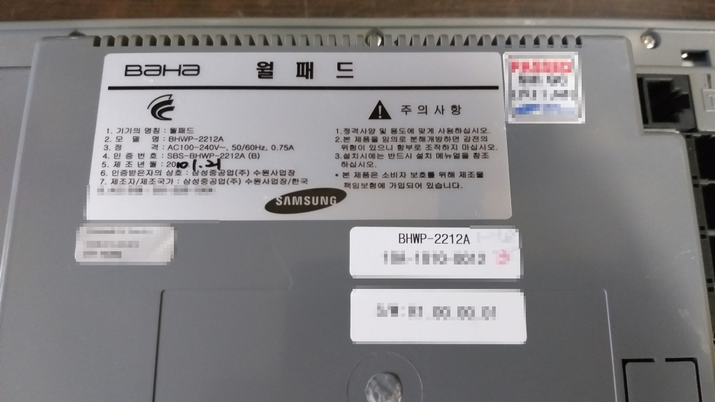 입고 제품 : 삼성중공업 SAMSUNG 바하 BAHA 월패드(WALL PAD) BHWP-2212A