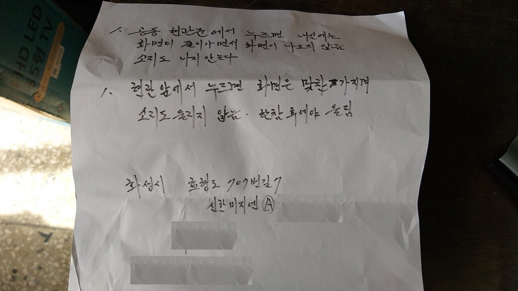 이상으로 화성시 안녕동 신한미지엔 아파트에서 삼성중공업 SAMSUNG 바하 BAHA 월패드 WALL PAD BHWP-1701 바탕화면 영상깨짐 및 영상흐름등 고장 수리 사례였습니다.