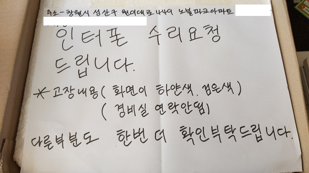 이상으로 창원시 성산구 원이대로 노블파크 아파트 삼성 이지온 ezon 홈오토메이션 SHN-8070CV SHN-8070 화면흑화 화면백화 경비실 통화 불능 고장 수리 사례였습니다.