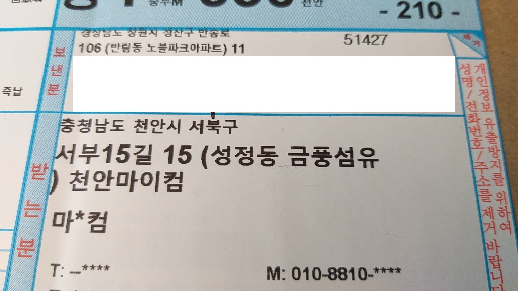 창원시 성산구 원이대로 노블파크 아파트에서 전화 상담 후 입고해주셨습니다.