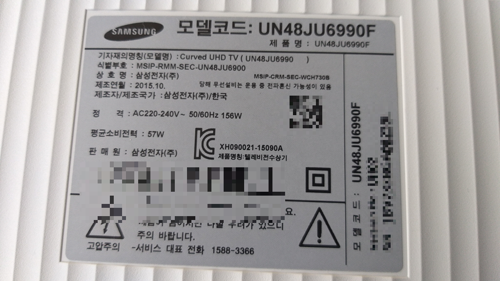 입고 제품은 UN48JU6990 UN48JU6990F 48인치 SMART LED UHD TV입니다.