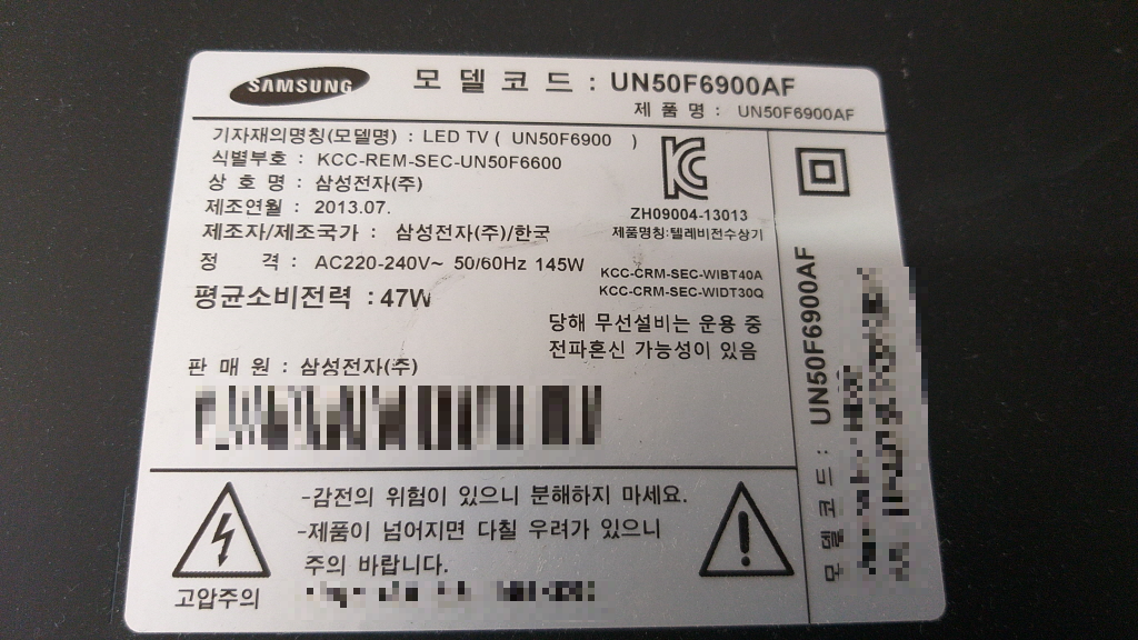 이상으로 전원 켜지고 소리(음성)도 출력되나 화면에 영상이 어둡게 보이는 UN50F6360AF, UN50F6400AF, UN50F6420AF, UN50F6450AF, UN50F6600AF, UN50F6700AF, UN50F6800AF, UN50F6900AF 50인치 TV 고장 수리 사례였습니다.