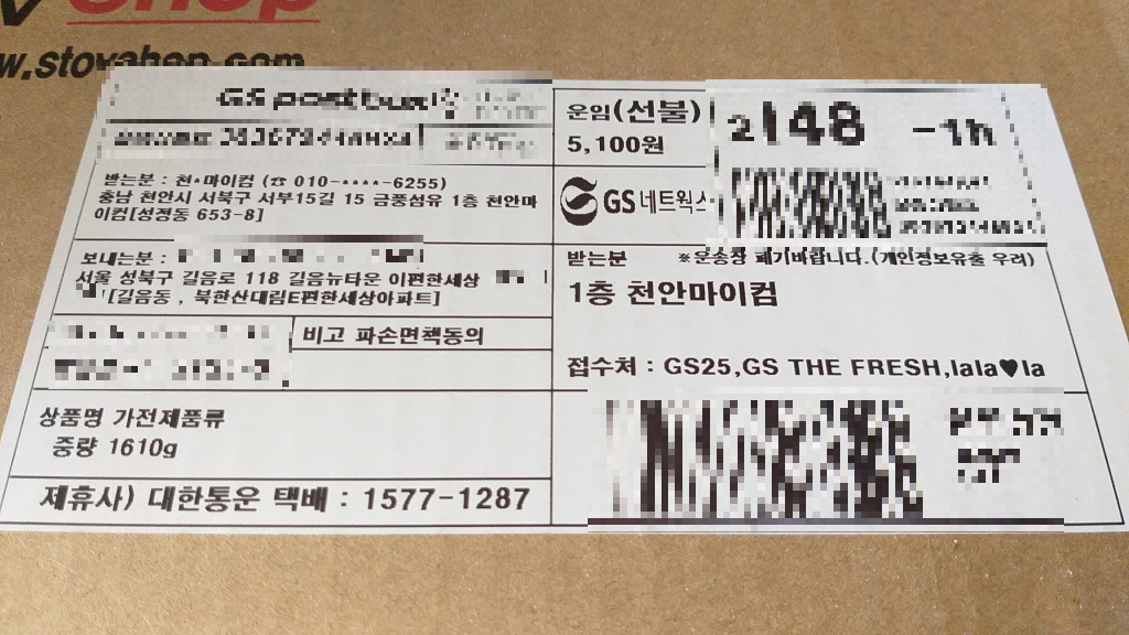 서울 성북구 길음로 118 이(E)편한 세상 아파트에서 택배를 이용하여 입고되었습니다.