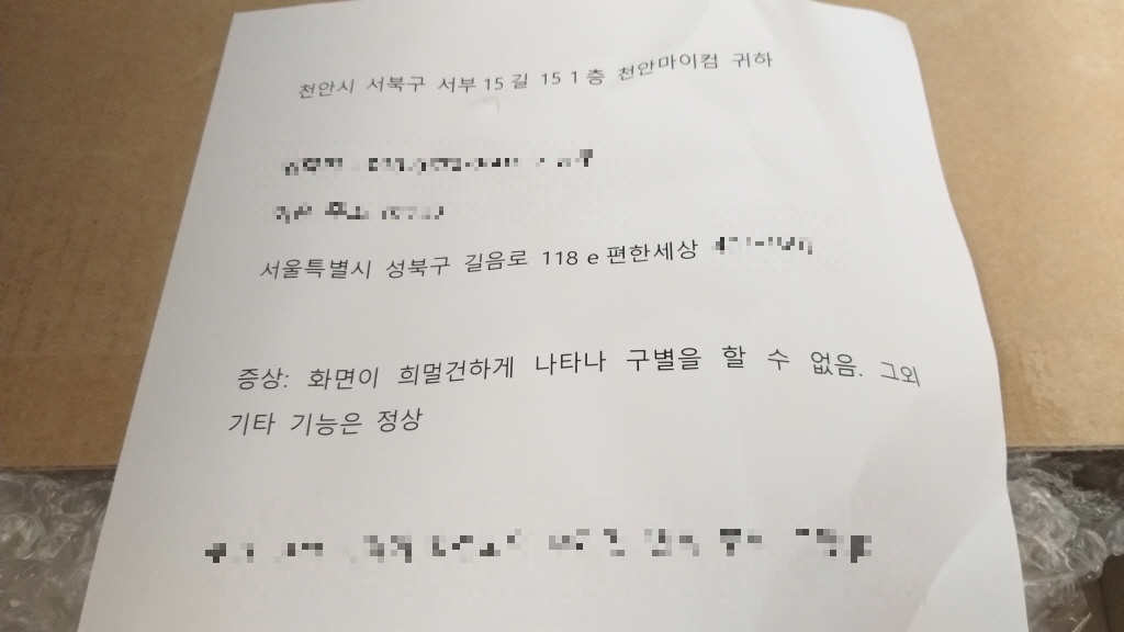 고장 증상은 화면이 켜지고 정상적인 바탕화면이 아니고 하얗고 뿌연 백화 현상이 나타납니다.