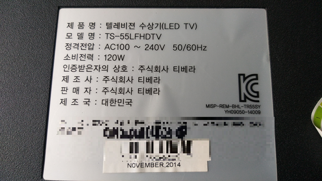고장 제품은 TS-55LFHDTV 55인치 TV입니다.