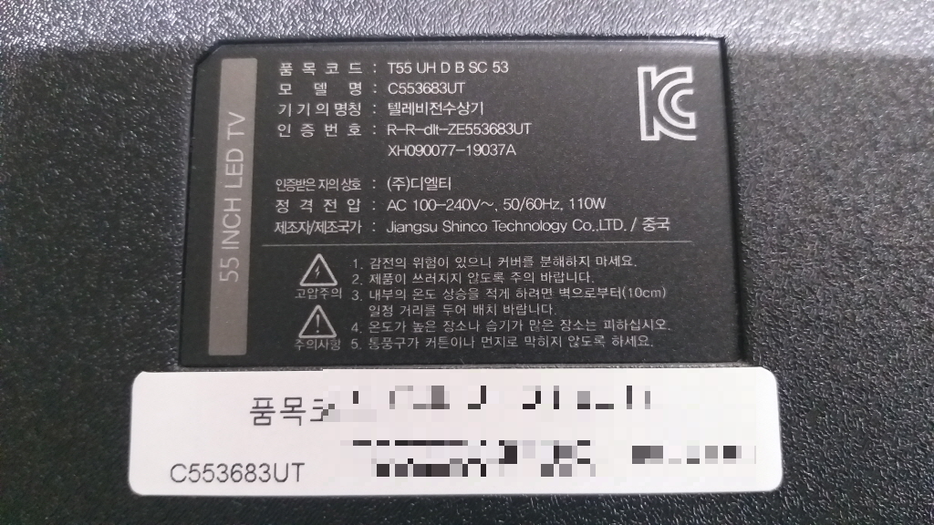 입고 제품 : 디엘티(DLT) 시네EYE C553683UT 55인치 UHD LED TV