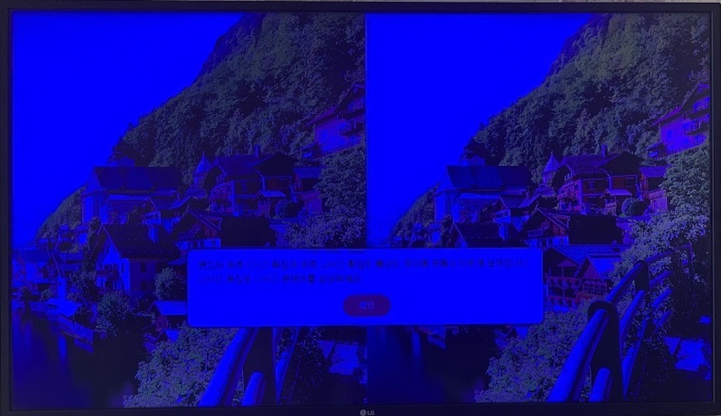 전원은 켜지고 화면에 영상이 어두운 파란색(DARK BLUE PICTURE)으로 발현되는 고장으로 직접 내방 입고해 주셨습니다.