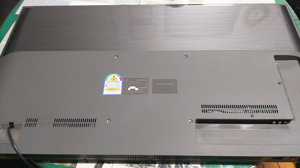 고장 제품은 제이브이씨(JVC) LT-43MK770 43인치 UHD LED TV입니다.