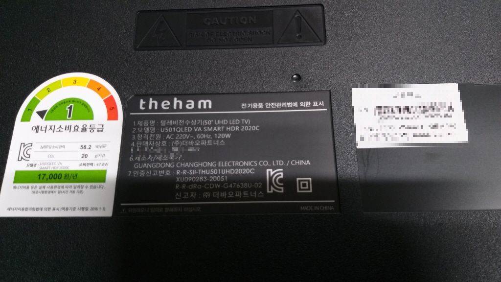입고 제품 : 더함 THEHAM U501QLED VA SMART HDR 2020C 50인치 QLED TV