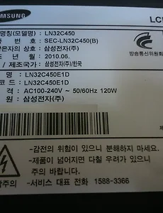 천안 아산 공주 세종 평택 안성 TV 수리 - 삼성전자 LN32C450 LN32C450E1D 32인치 LCD TV 화면이 켜지지 않는 고장 수리
