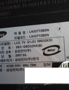 [천안TV수리] 삼성 LN32T72BDN 32인치 LCD TV 전원은 켜지고 음성(소리)은 나오나 화면이 나오지 않는 고장 수리
